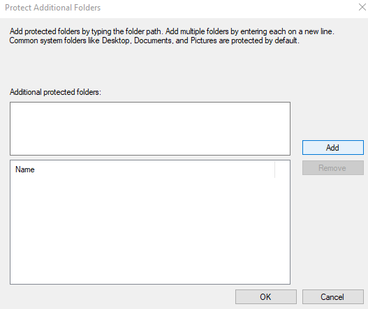 Microsoft Link: https://docs.microsoft.com/en-us/microsoft-365/security/defender-endpoint/customize-controlled-folders?view=o365-worldwide